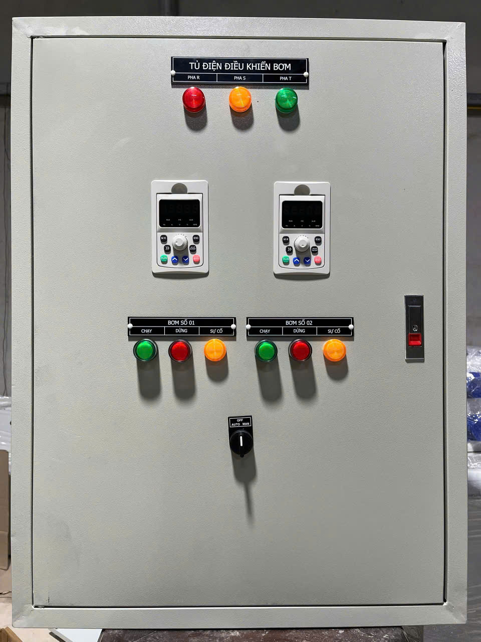 Tủ điều khiển bơm luân phiên sử dụng biến tần là giải pháp thông minh giúp duy trì áp lực ổn định cho hệ thống cấp nước, phòng cháy, bơm tăng áp hoặc hệ bơm công nghiệp.